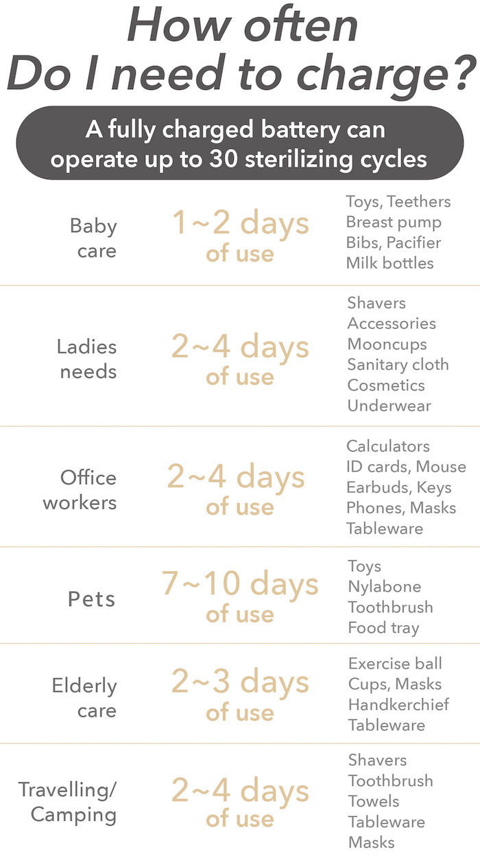 Other than that, with the great pandemic affecting the world, we do not only need to worry about our own health, but also the kids or elderly who may have weaker immune systems, or even those medical personnel who are fighting the pandemic in the frontline. With years of developing products, we have come up with OCONNOR Portable UV Light Sterilizer Pouch in hopes that can make everyone's life better.