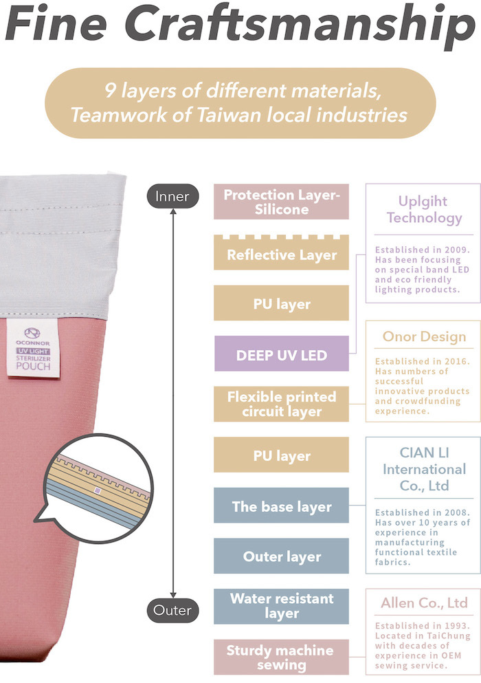 OCONNOR Portable UV Light Sterilizer Pouch is an unprecedented washable and durable sterilizing pouch.