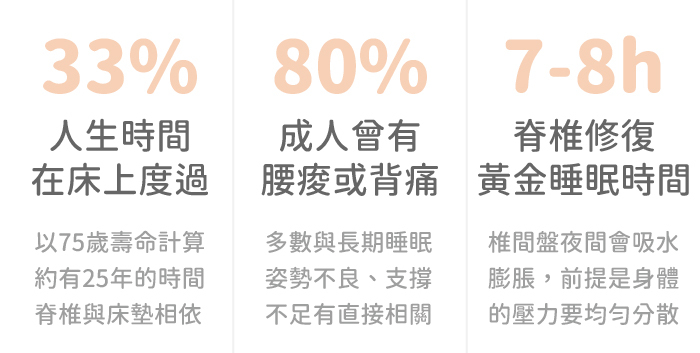 「脊椎健康不只是白天的事。八小時的睡眠,是身體修復、調整的關鍵窗口。給予脊椎正確的支撐,相當於每晚都在做一次溫和的脊椎減壓。」