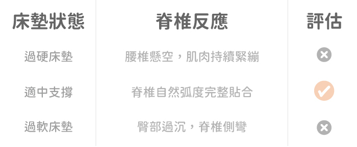 手無法伸入 → 床墊太硬,腰椎沒有正常弧度