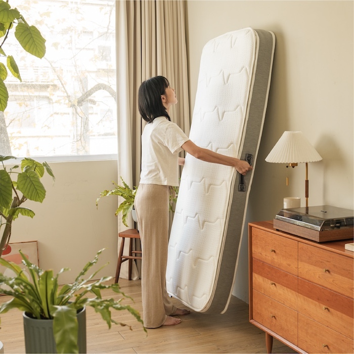 重量僅為市售床墊的 約 1/4,卻能提供接近獨立筒的躺感;