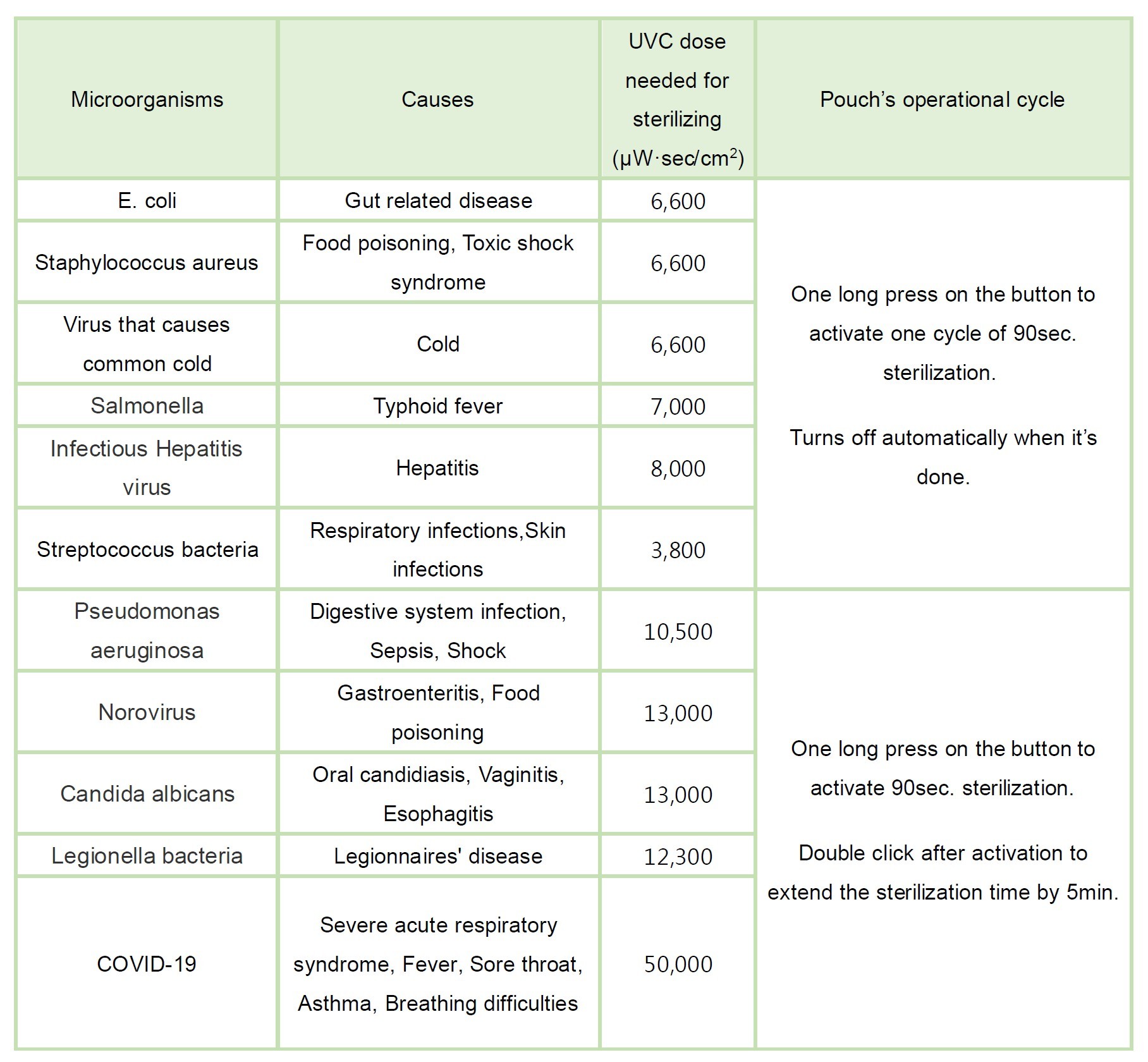 To perform an effective sterilization, we need the right wavelength of UVC and enough amount of UVC dose.