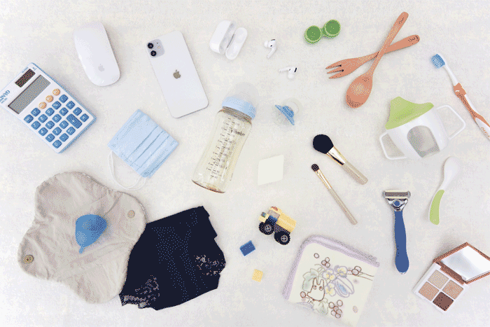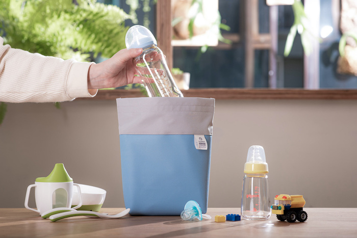赤ちゃんがお食事をする前、素早く哺乳瓶、おしゃぶり、搾乳器、食器などをポーチにいれ、