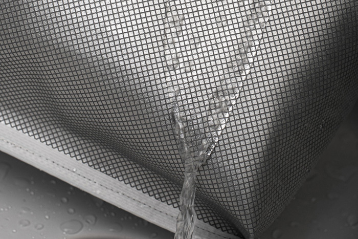 外側は100%ポリエステルで、内側は9層もの複合材料でできております。