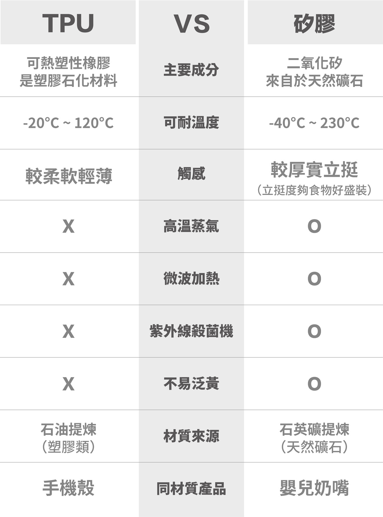 其一,塑膠和人工橡膠製品遇熱會釋出有毒物質,而食品級矽膠在製作過程中非常高溫,有毒成份即已在製作過程中完全蒸發,並且本身可耐200度的高溫。