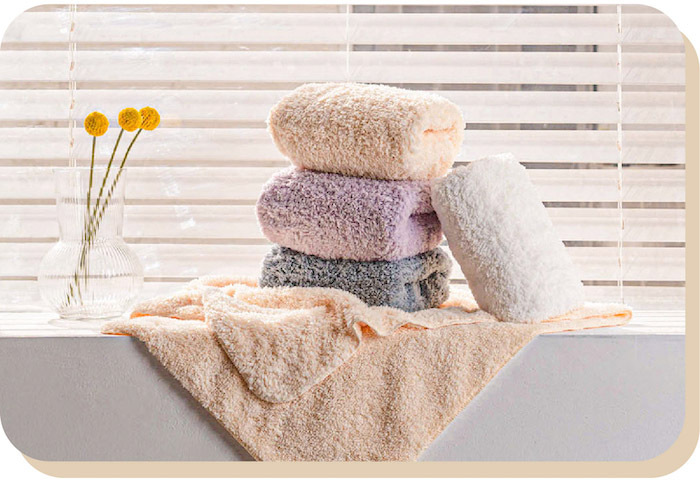 習慣:使用完的毛巾,需要展開或是掛置著,展開的毛巾較容易透氣也能被光線照射,巾朵雲有很好的清潔效果,可以完善的清潔肌膚上的油脂、髒污,而油脂中的細菌會產生氣味,堆疊在一起,不容易透氣,就容易會讓毛巾發出味道。