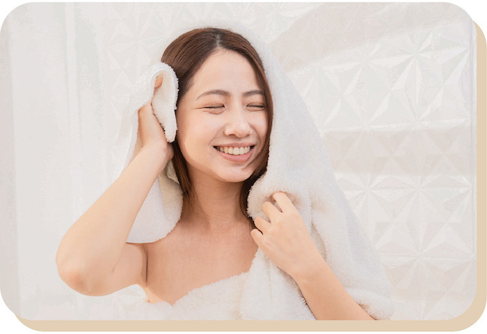團隊與台灣在地老牌紡織工廠緊密合作,透過工廠外銷40萬條毛巾給國際知名品牌12年以上的品質管控經驗,並選用臺灣大廠超微細纖維紗線,重新設計毛巾纖維的織物比例,讓毛巾吸飽水時能達到自身重量 8 倍!快速吸乾水分,大幅節省女生吹頭髮的時間,同時超微細纖維更能帶走毛孔油脂髒污,擦拭後給你清爽潔淨的沐浴體驗!✨