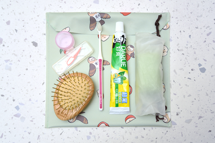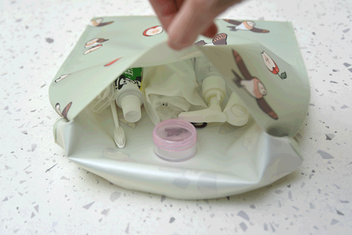 當旅行袋:可以裝分裝瓶、牙刷牙膏、梳子、刮鬍刀、隱形眼鏡盒、小毛巾等